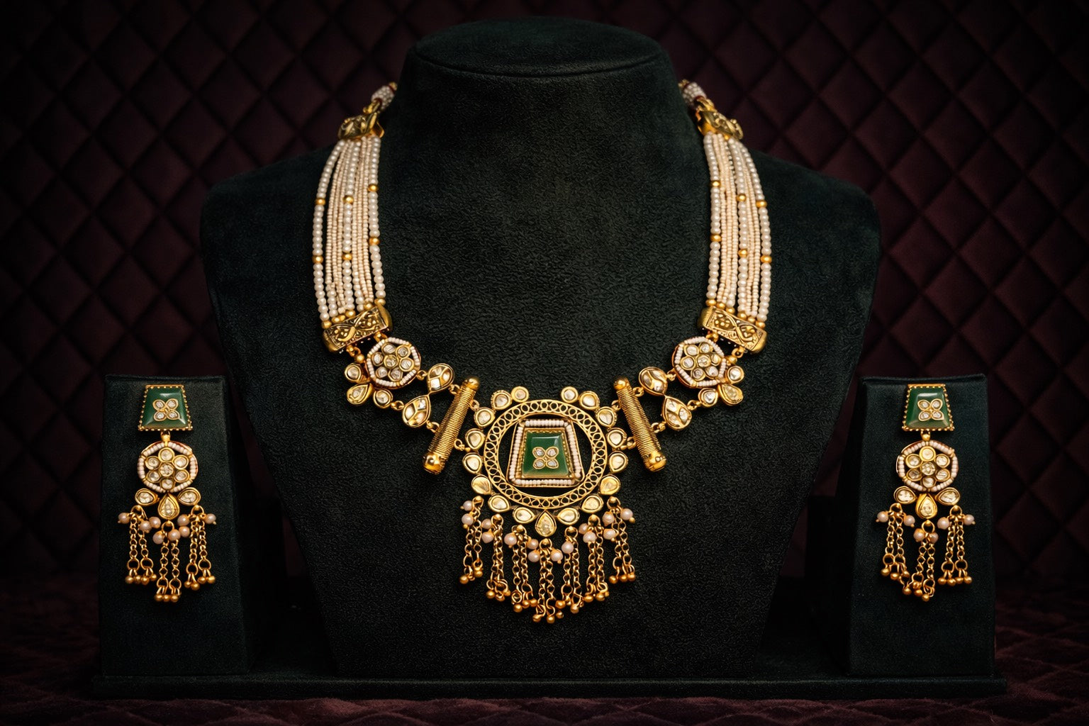 Handcrafted Kundan Work • Intricate Artisanal Detailing • Multi-Strand Pearl Setting • Heritage Jewelry Craft